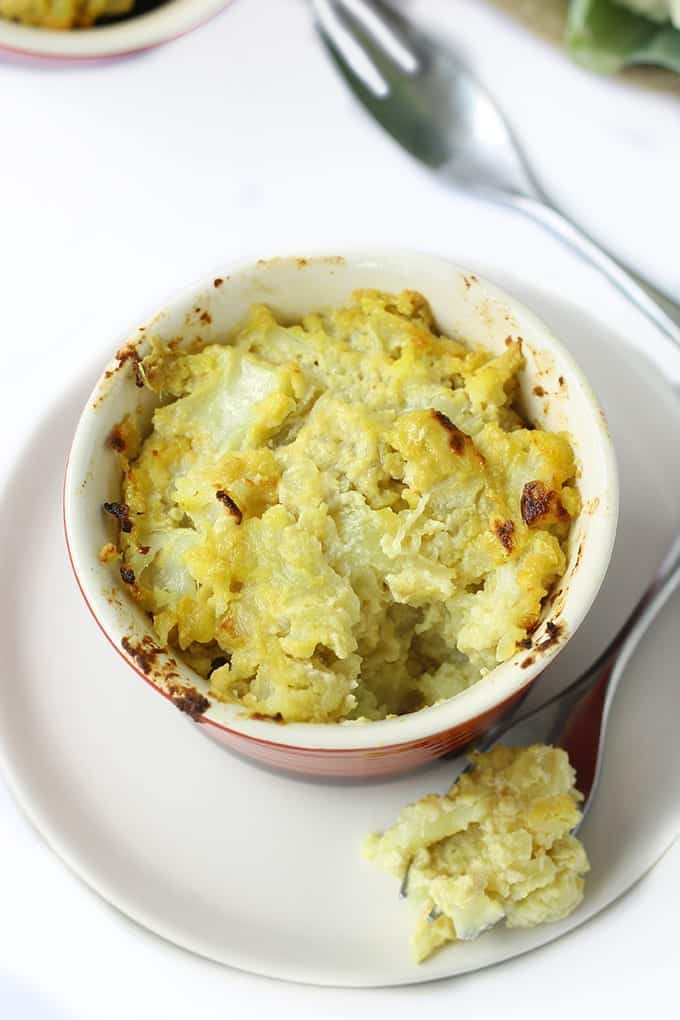 Lately I have been trying to avoid going overboard with the dairy. As much as I love cheese and yogurt (the only kinds of dairy I eat), I’m not into looking and feeling like a heifer, which seems to be my body’s natural reaction to all things cow. But you know I’m not one for restriction so I’m trying to find ways to sub out dairy where I see fit. Like mac n’ cheese (or baked “cheesy” cauliflower…whatevs) which I eat just about never.