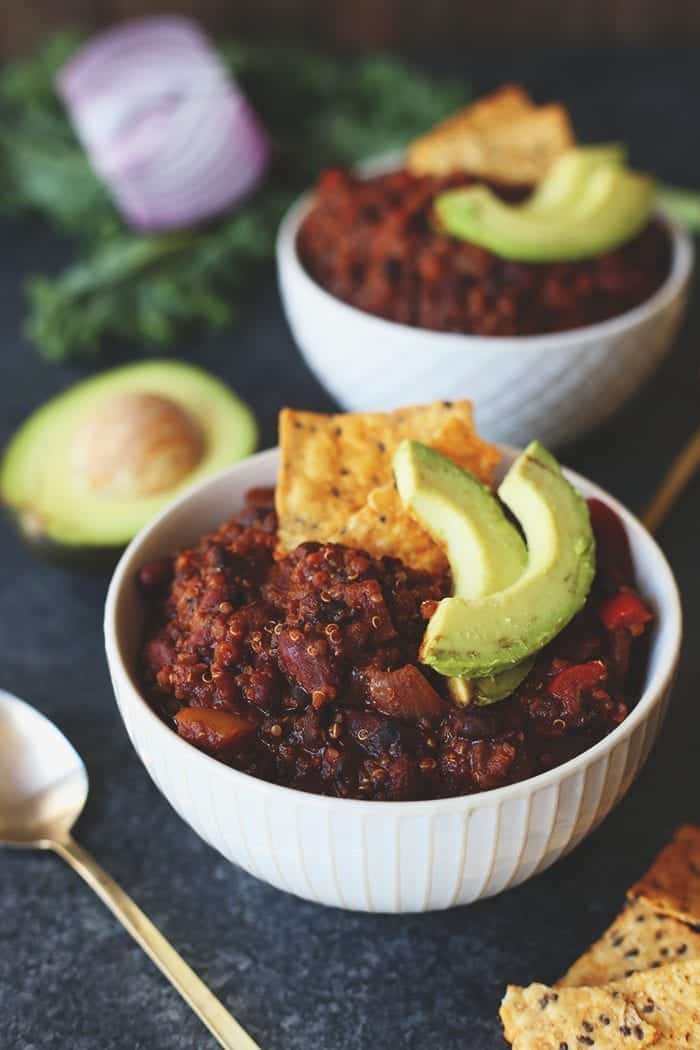 The perfect vegetarian meal all in one pot with this delicious quinoa chili! This recipe tastes just like traditional chili but with quinoa instead of meat, plus a secret ingredient to maximize flavor!