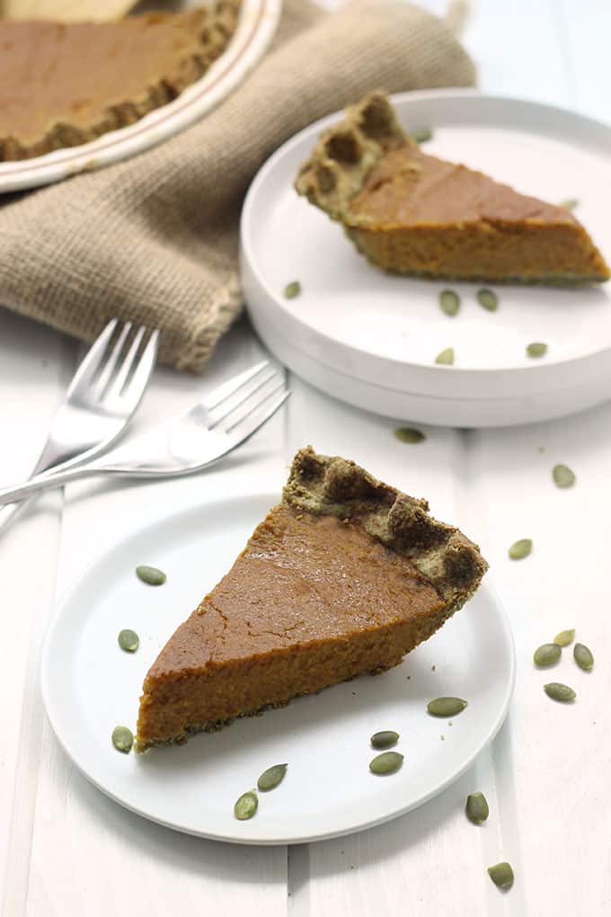 Paleo Pumpkin Pie in a Pumpkin Seed Crust